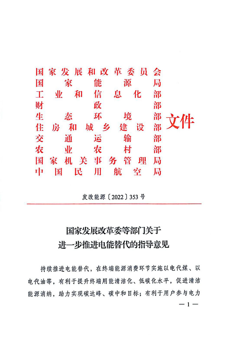 3月9日,国家发展改革委、国家能源局、工业和信息化部、财政部、生态环境部、住房城乡建设部、交通运输部、农业农村部、国家机关事务管理局、中国民用航空局等10部门联合印发《关于进一步推进电能替代的指导意见》。